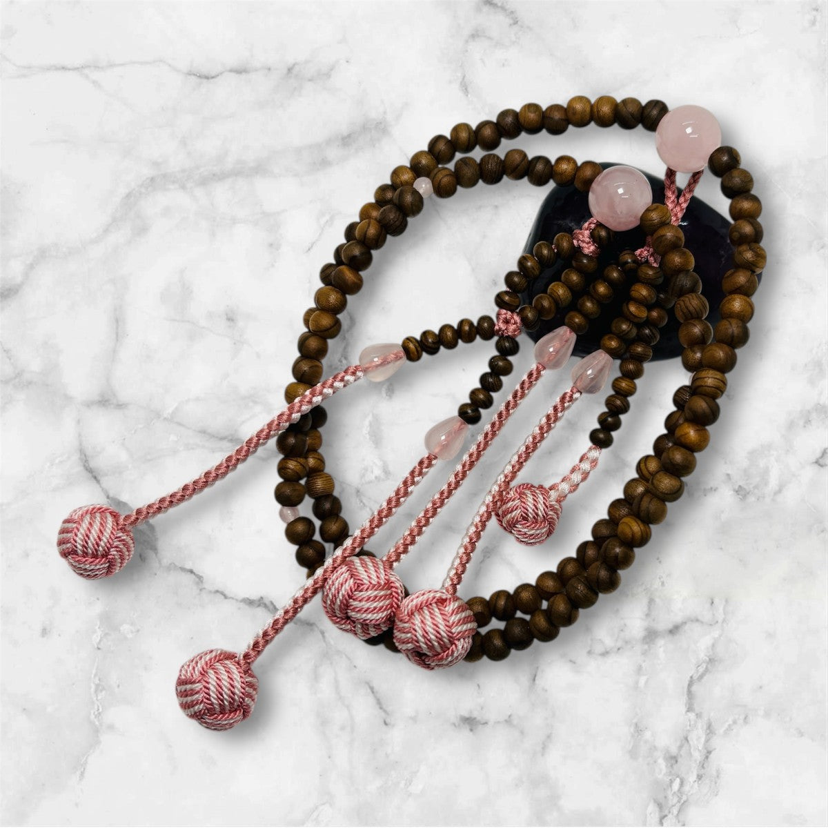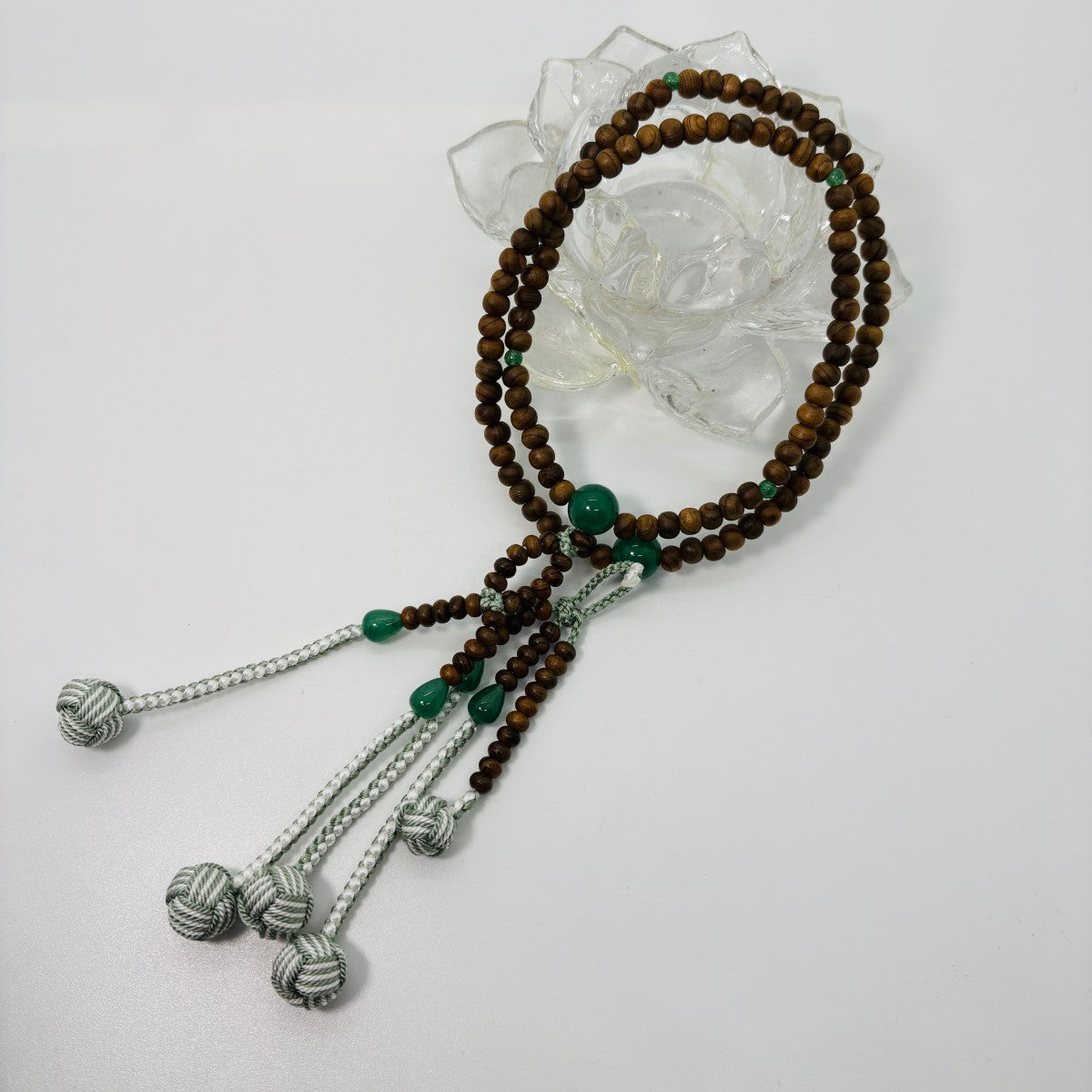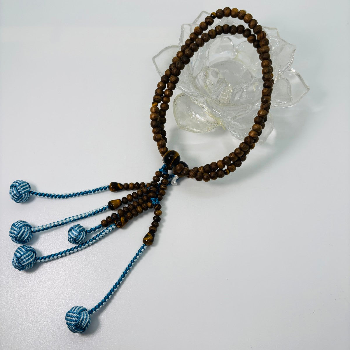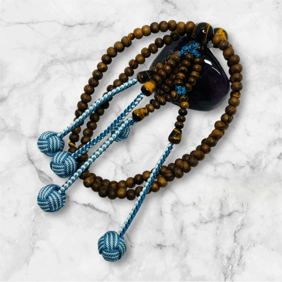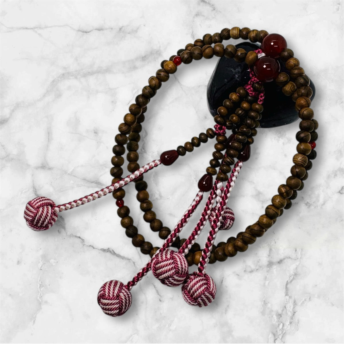 珠数 日蓮宗 神代杉 八寸丸玉 天然石仕立 二色編み込み房 希少