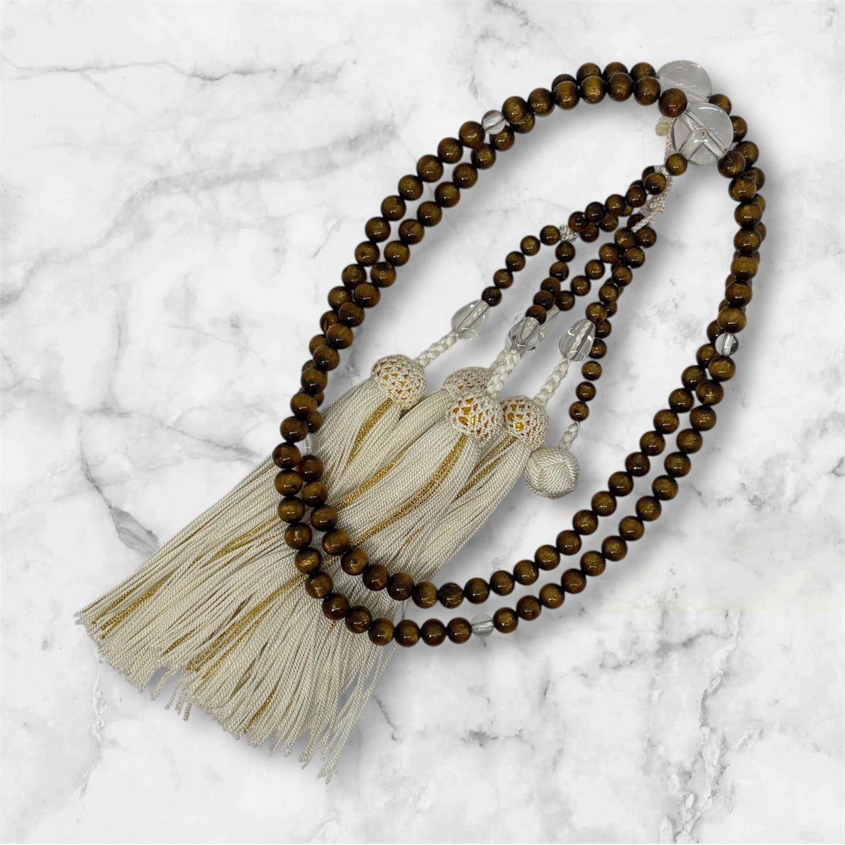 - サイズ仕様 : 日蓮宗僧侶用 一尺二寸(内周74㌢)親ツユ四天本水晶仕立 正絹頭付房