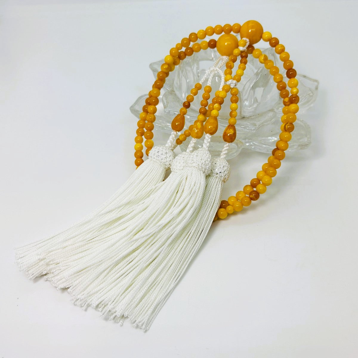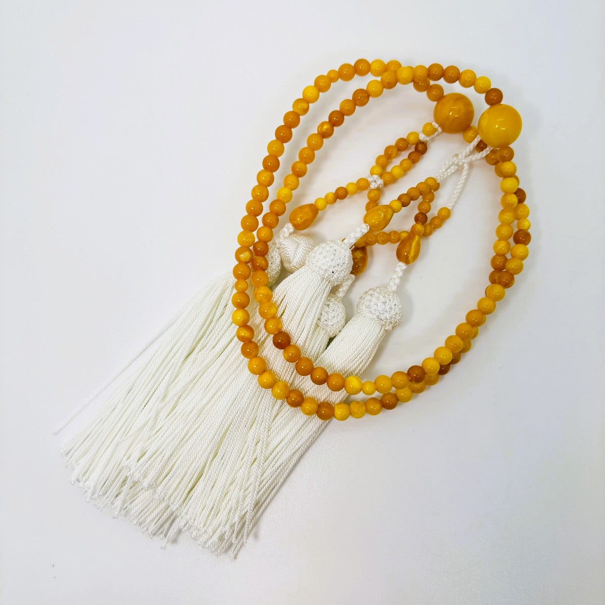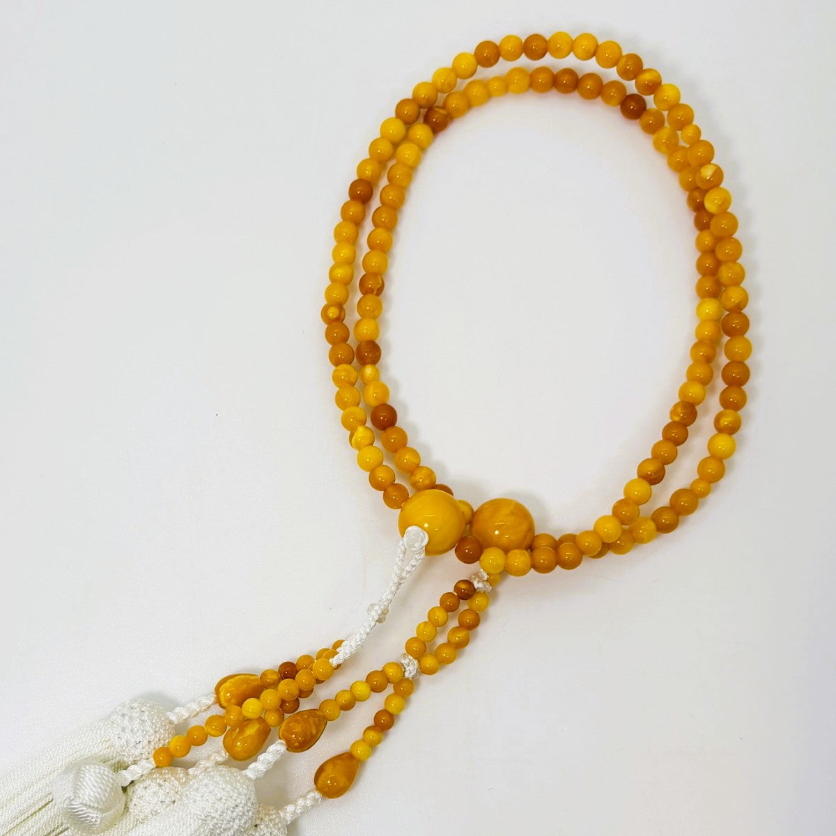 日蓮宗僧侶用珠数です。希少価値の琥珀(中国産)の中から、最高級の磨きで仕上がっております。